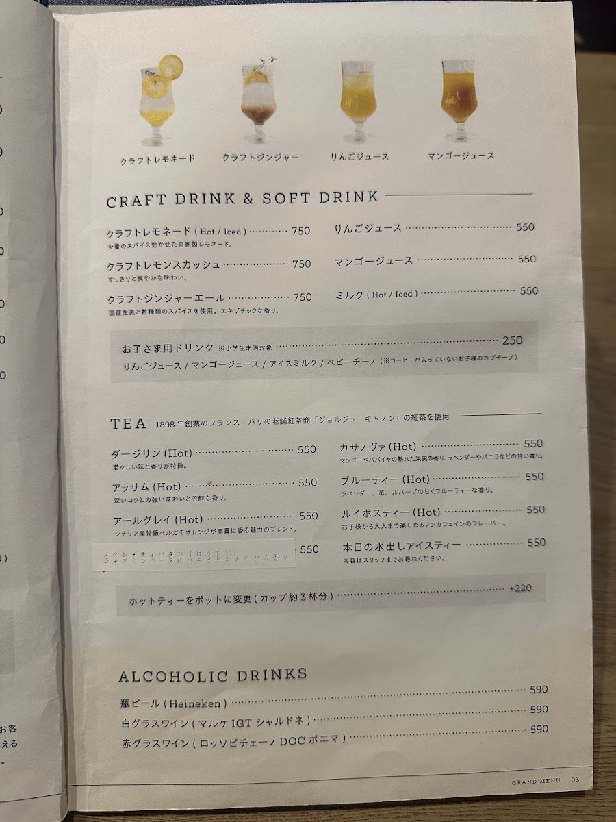 The café also offers a variety of drinks, including premium teas from the historic Georges Cannon of Paris and a selection of wines and beers. Guests can enjoy the inviting atmosphere, enhanced by friendly service and the ability to place orders via a convenient QR code or verbally for a seamless dining experience.